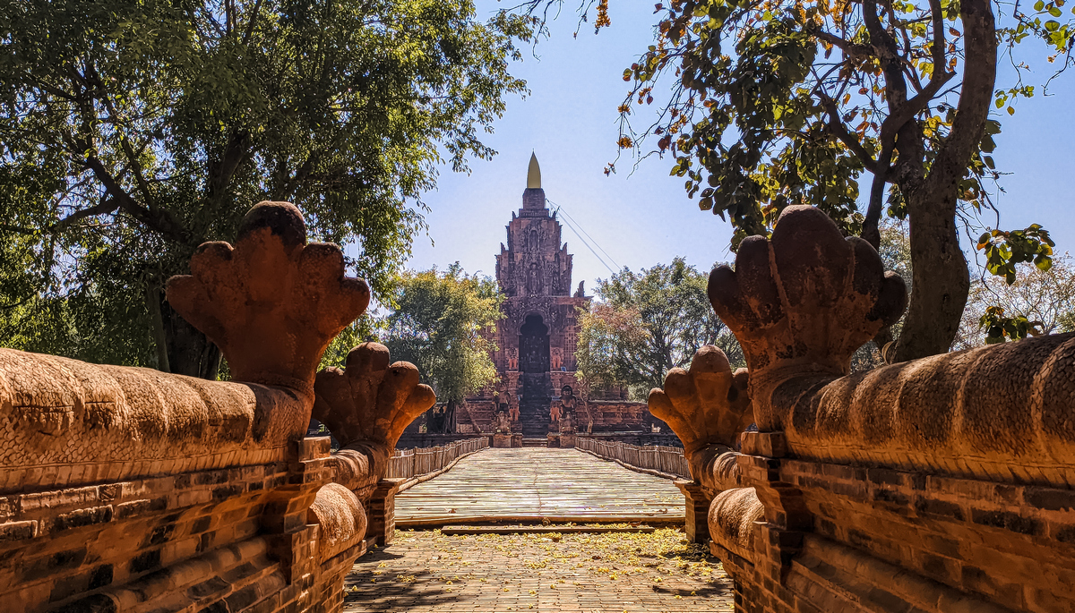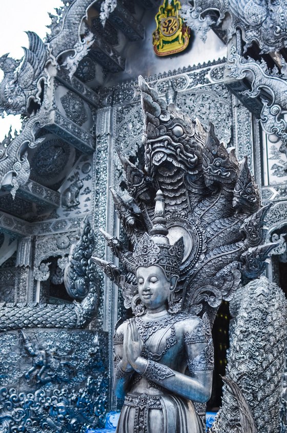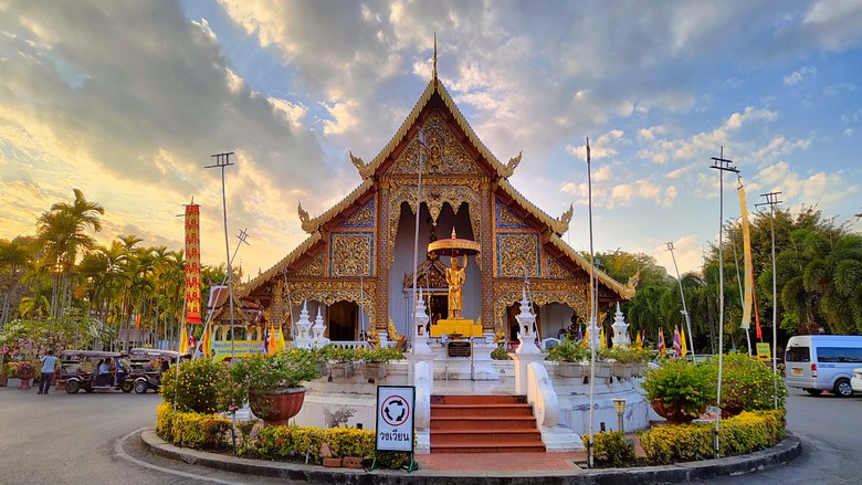 После парка вам придется перейти дорогу и канал и выйти за пределы «квадрата», чтобы посетить Серебрянный храм Wat Sri Suphan. На улочках, которые ведут к храму много мастерских и уличных торговцев, продающих handmade сувениры. Опасайтесь ездить в выходные. Во второй половине дня, улица рядом с храмом превращаяется в большой базар.