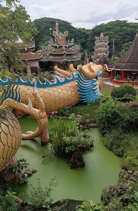 Я советую не пропустить одно интересное место — китайский храм Kuan Im Chokchai, но для этого нам придется проехать немного по узким улочкам. Оно этого стоит.