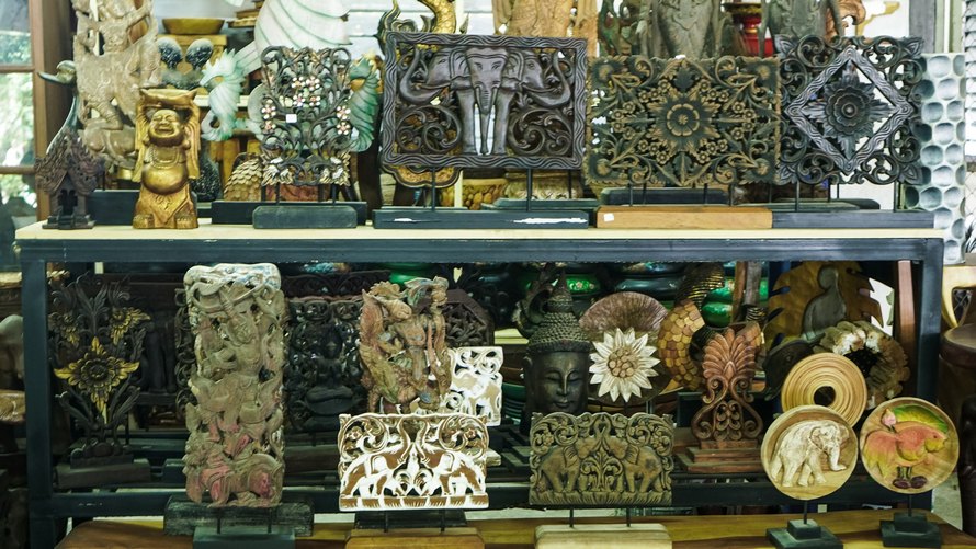 На обратном пути, я рекомендую проехать через южную часть района Ханг Донг (Hang Dong) и посетить еще одно место с продукцией местных мастеров. Это район и рынок Ван Тавай (Ban Tawai). Здесь продается мебель и декоративные изделия из красного дерева. Начиная от миниатюрных фигурок, ваз для цветов, оконных рам до дверей и шкафов. В свободное время от работы над мебелью, мастера создают деревянные скульпуты животных: лошадей, оленей и слонов. Вы сразу заметите бегущих вдоль обочины деревянных оленей.