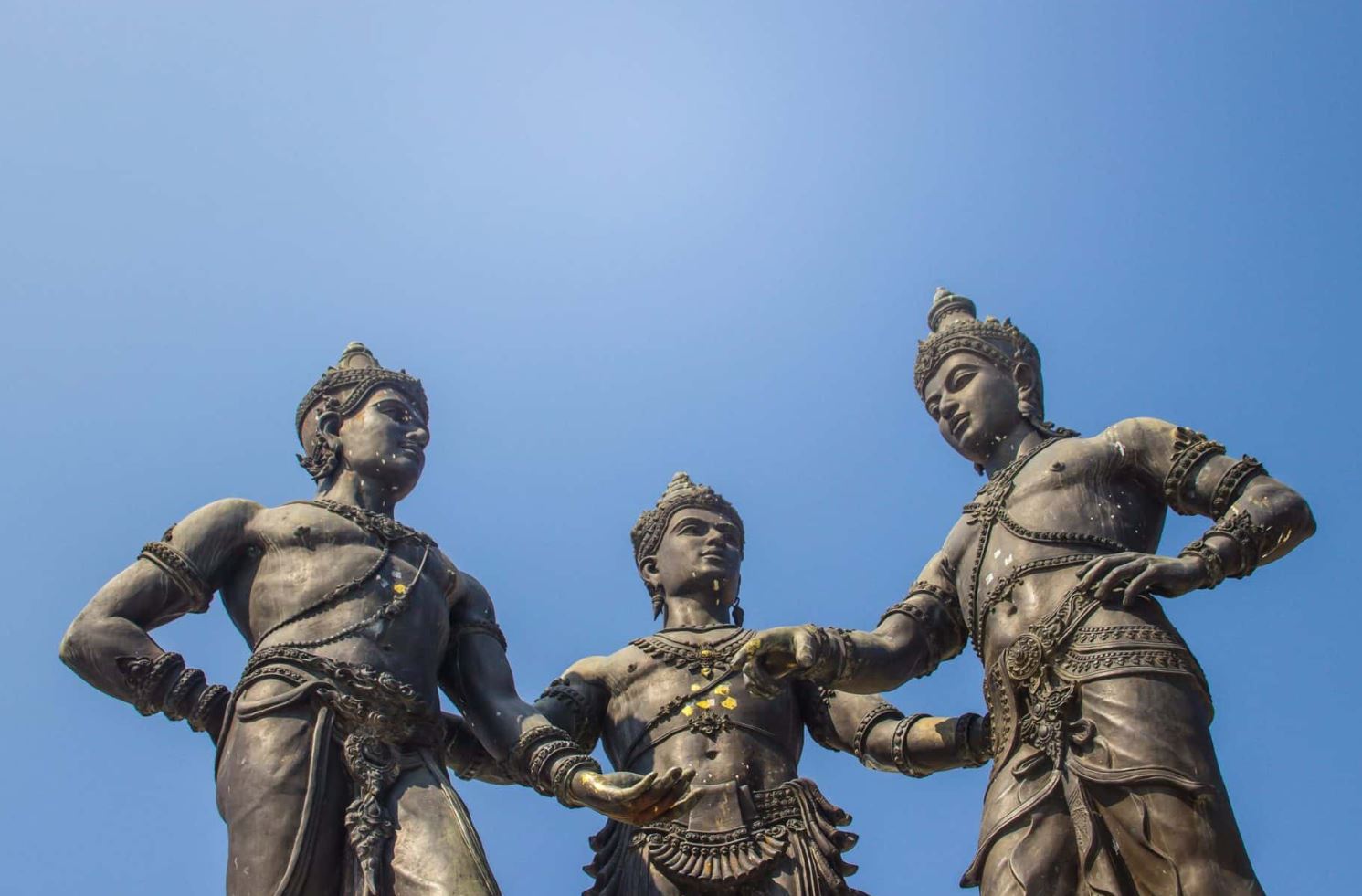 Теперь двигаемся по улице на север квадрата. По пути проезжаем площадь с монументом Три Короля Ланны. И снова сворачиваем в красивый храм Wat Chiang Man. Здесь вас привлечет ступа, окруженная фигурами слонов.